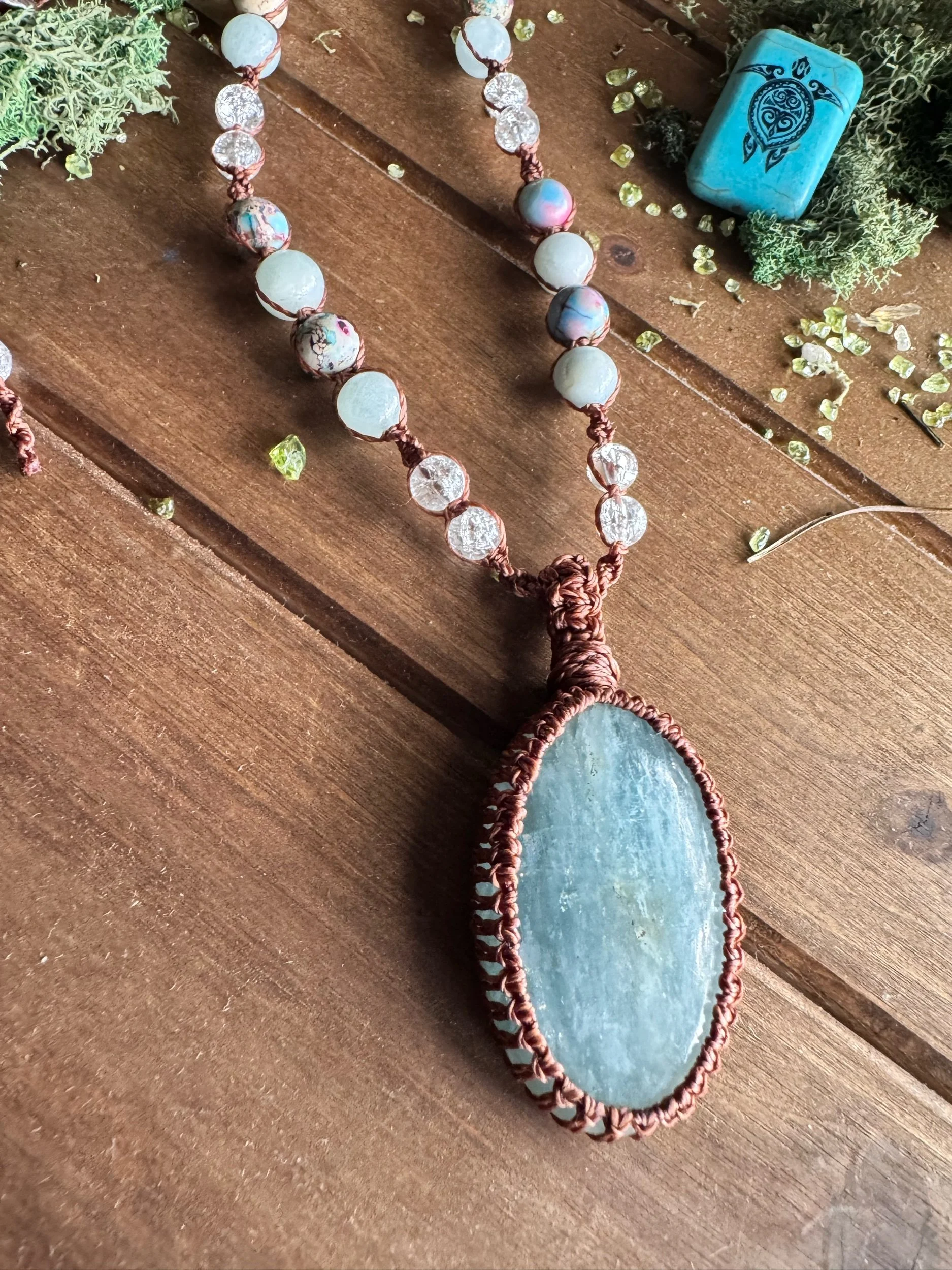 All necklaces are hand made with loving intention. They are made with high quality materials. Adjustable.
